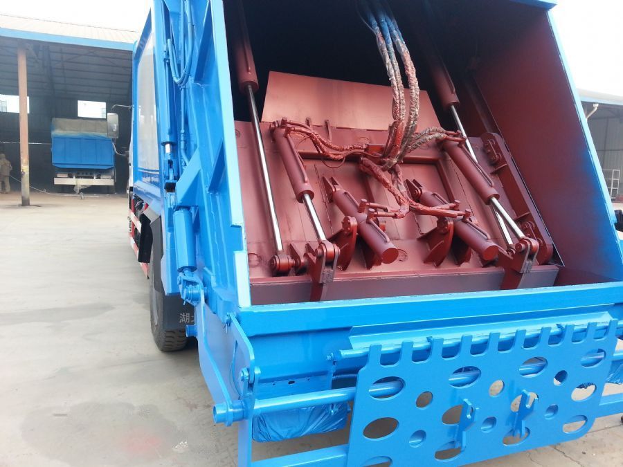 工作原理及特點描述 整車為全密封型,采用電液一體化技術(shù),借助機、電、液聯(lián)合自動控制系統(tǒng),通過車廂、填裝器和推鏟等專用裝置,實現(xiàn)垃圾倒入、壓碎或壓扁、強力裝填,把垃圾擠入車廂并壓實和推卸。壓縮過程中的污水全部進入污水廂,較為徹底的解決了垃圾運輸過程中的二次污染的問題。