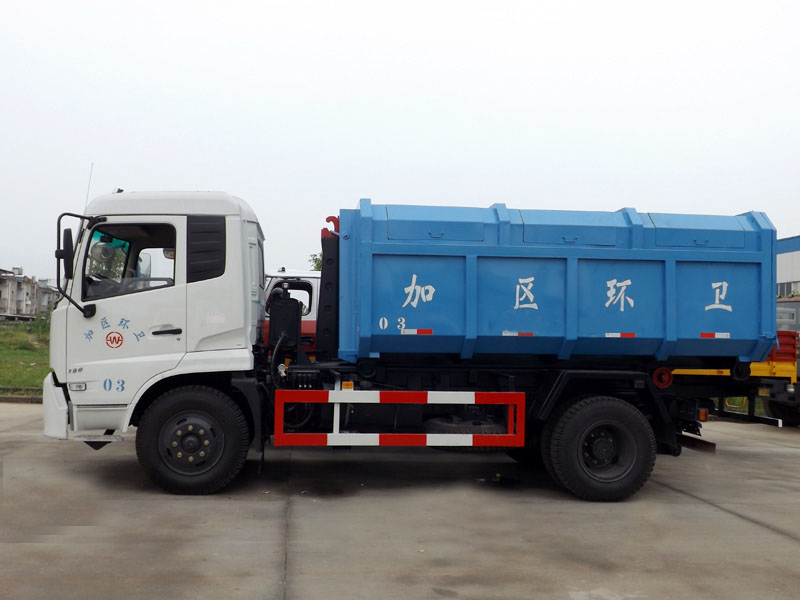 該車可一車配多個垃圾斗(箱),循環使用,有效提高利用率。可卸式垃圾箱可任意擺放,機動靈活,是城市環衛部門、社區物業、廠礦學校和工業基地等地的理想垃圾用車、主流垃圾車。