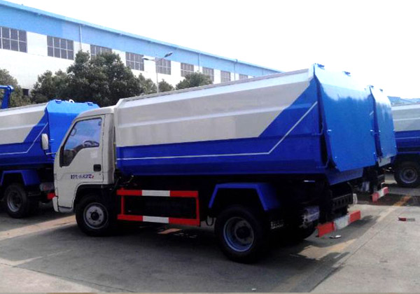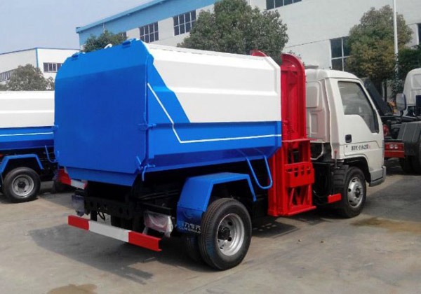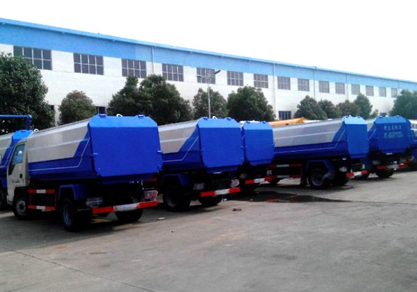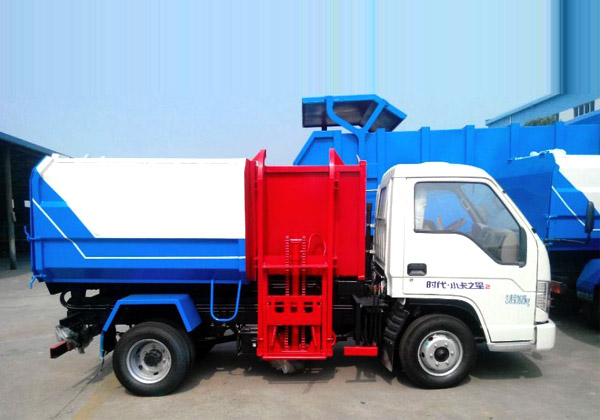工作原理:自裝卸式垃圾車是由密封式垃圾廂、液壓系統、操作系統組成,能配幾十個垃圾桶,實現一車與多個垃圾桶聯合作業,廂體上的液壓升降裝置可將垃圾桶吊上、放下,上下升降,上下一次工作循環時間為50S,密封式廂體環保衛生,可避免二次污染。其自裝式的掛桶裝置可直接將路邊的垃圾桶掛在上面用提升機直接到在垃圾箱體里面省去了裝垃圾的麻煩。