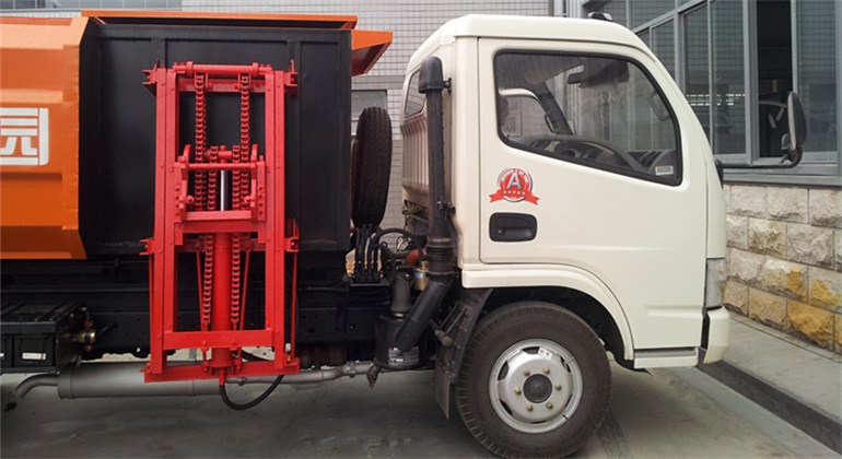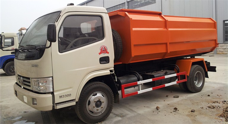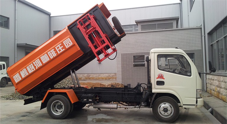 工作原理:自裝卸式垃圾車是由密封式垃圾廂、液壓系統、操作系統組成,能配幾十個垃圾桶,實現一車與多個垃圾桶聯合作業,廂體上的液壓升降裝置可將垃圾桶吊上、放下,上下升降,上下一次工作循環時間為50S,密封式廂體環保衛生,可避免二次污染。其自裝式的掛桶裝置可直接將路邊的垃圾桶掛在上面用提升機直接到在垃圾箱體里面省去了裝垃圾的麻煩。