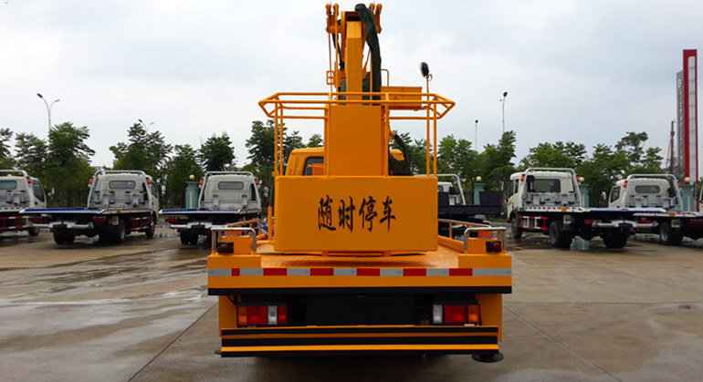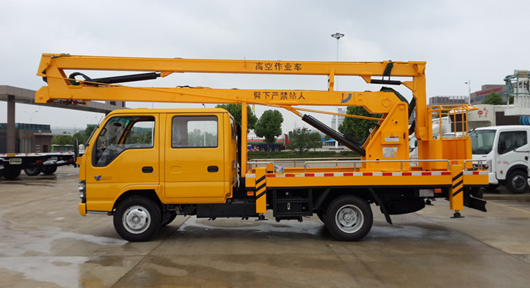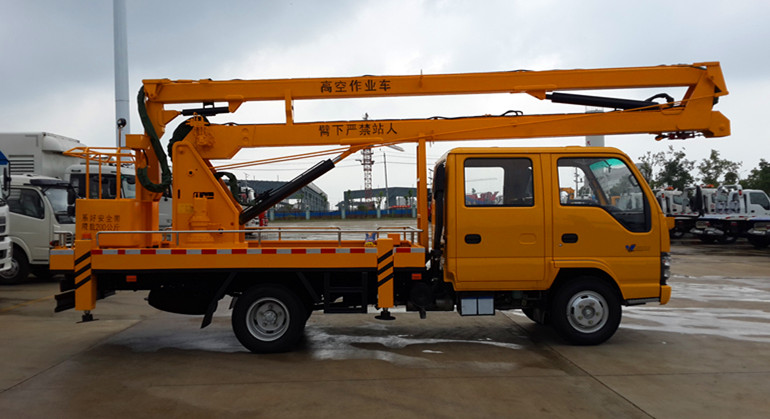 高空作業(yè)車采用國產(chǎn)、進(jìn)口換向閥及液壓油缸,換向平衡,操作靈活方便,支腿與工作臂互鎖,支腿與工作臂互鎖,防止誤操作過位。對高空作業(yè)車有特殊要求的用戶請致電本公司,我們可以為用戶定單設(shè)計(jì)、改裝。可加裝電控系統(tǒng)。 高空作業(yè)車采用原裝底盤,平頭 ,可容納更過的作業(yè)人員。性能穩(wěn)定可靠,主要用于電氣線路檢修、高空作業(yè)清洗、樹木剪枝等高空作業(yè)使用。