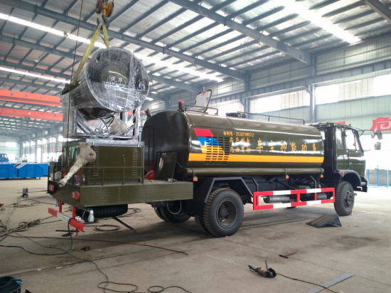 整車說明: 1,罐體有效容積:9.98立方米,介質:水,密度:1000千克/立方米,當軸距(mm)為3950時,罐體尺寸(mm)為4000×2300×1500,當軸距(mm)為4500或4700時,罐體尺寸(mm)為4500×2200×1400;2,車輛長/軸距/前懸/后懸對應關系為(mm):7750/3950/1440/2360,8300/4500/1440/2360,8500/4700/1440/2360,7750/3950/1250/2550,8300/4500/1250/2550,8500/4700/1250/2550;3,側防護及后下部防護裝置均采用Q235A材質,均采用焊接連接,后下部防護尺寸(mm):50×150,離地面高度(mm)530;4,ABS型號為ABS-E 4S/4M,生產企業是威伯科汽車控制系統()有限公司;5,隨底盤選裝駕駛室;6,文字噴涂位置,車輛顏色及局部細節可變化。