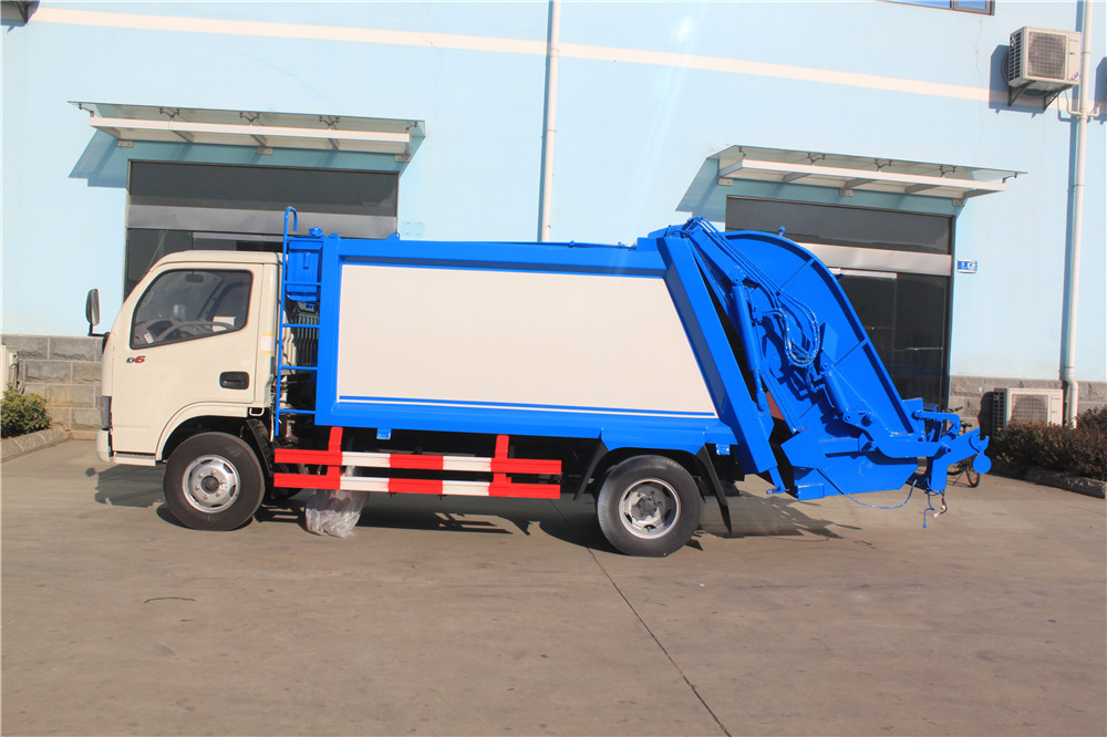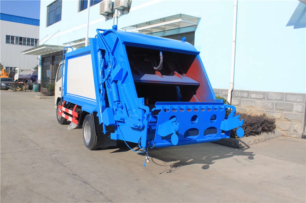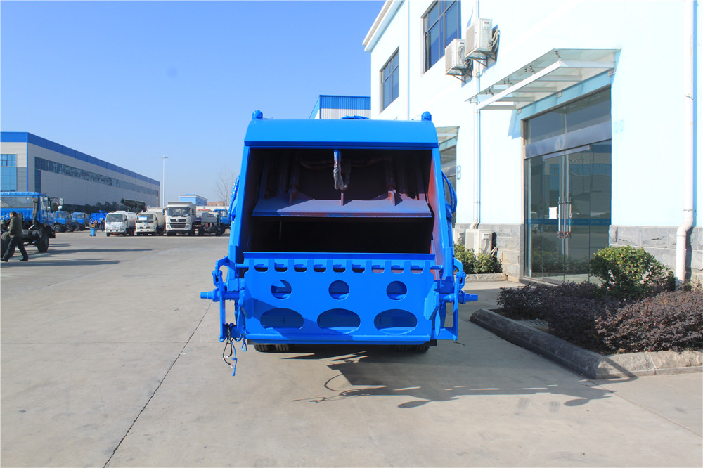 東風(fēng)銳鈴壓縮式垃圾車上裝配置:有效壓縮容積5方,可裝4-5噸生活垃圾,壓縮倍率3-4倍,壓縮后生活垃圾密度從0.36變?yōu)?.95以上,帶污水收集箱,新款平板式箱體更美觀,尾部 帶密封橡膠墊,可防污水滴漏二次污染。尾部可帶翻轉(zhuǎn)斗或掛桶裝置,可選裝PLC一鍵操控系統(tǒng),駕駛室和尾部雙操控機構(gòu)。