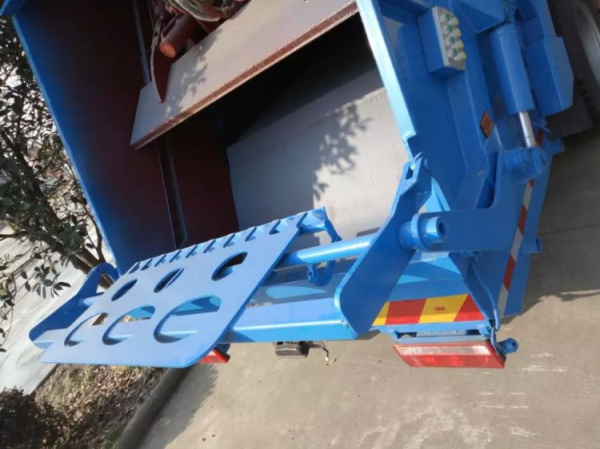 ⑨ 方便的操作控制 作業(yè)控制盒分別安裝在駕駛室內(nèi)和車尾,駕駛室內(nèi)的作業(yè)控制盒可控制推擠卸料和選擇操作模式(如自動(dòng)或手動(dòng)),車尾的作業(yè)控制盒則控制壓填機(jī)構(gòu)和翻桶機(jī)構(gòu)的作業(yè),使用操作十分方便。特別是在垃圾填埋場,作業(yè)人員無須下車即可完成卸料和污水排放。